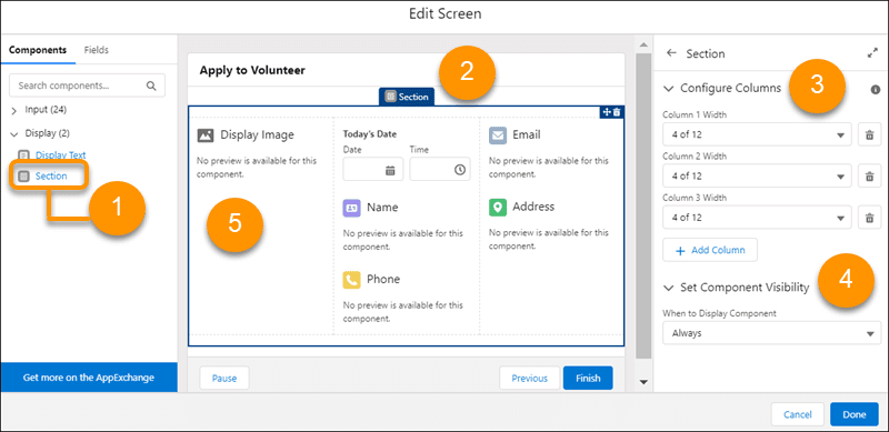 We can now organize record fields and screen components in up to four columns on the screen with the Section component.